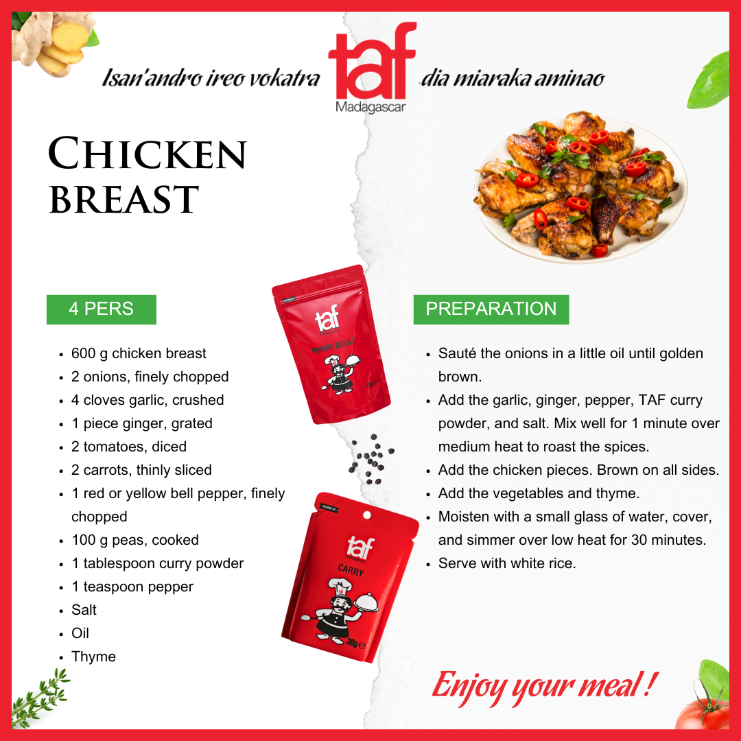 As the local market leader, TAF supports the Malagasy population in their daily lives with a range of products: coffee, tea, infusions, salt, spices and condiments such as vinegar, mustard, cassava starch, savory snacks and baking products.